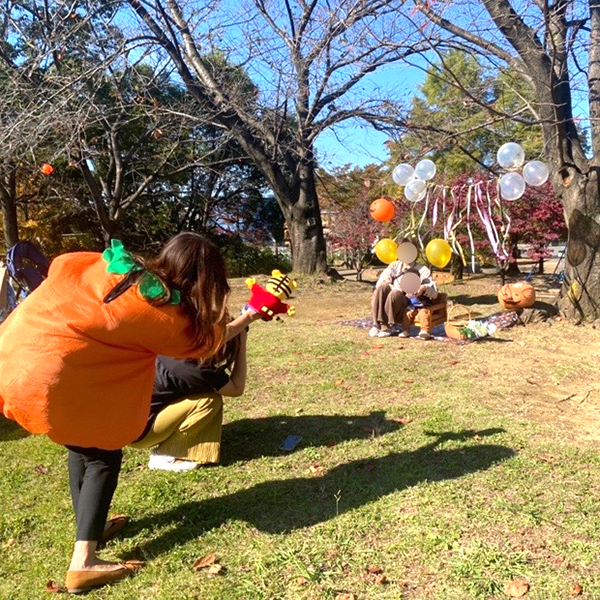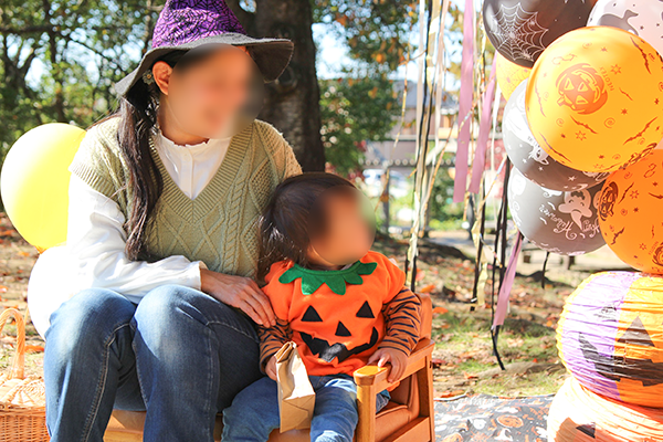 フォトスポットでは、好きな仮装を身につけて、写真撮影が得意な連絡員が、親子フォトを撮影しました。後日、写真のデーターを参加者の方に差し上げました。