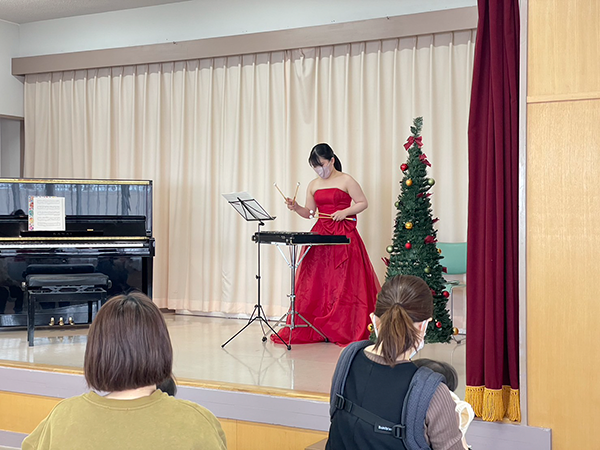 メインイベントは、蓮の音さんのクリスマスコンサート♪クリスマスにぴったりな素敵なドレス姿にうっとり!お子さんも楽しめる楽曲で一緒に歌ったり演奏したり楽しいひと時を過ごすことができました。