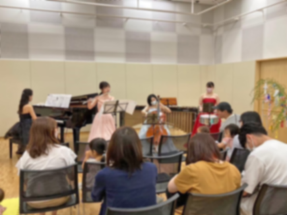 蓮の音さんによる演奏会の曲目の一部は、公式ラインでアンケートを取り、人気だった曲を取り入れました。途中、工作したタンバリンを使って、子供たちも一緒に演奏をしました。