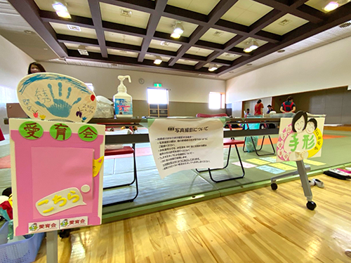 上期研修会として、親子で行う親子体操をミニフェスタのブースにて時間を設けて行いました。