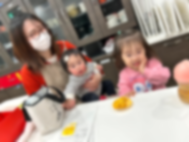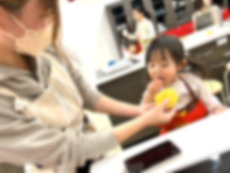 お子さん達は別室でお預かりし、おもちゃで遊んだり、追いかけっこをしたり楽しい時間を過ごしているようでした。出来上がったおやつもみんなで食べて大満足!